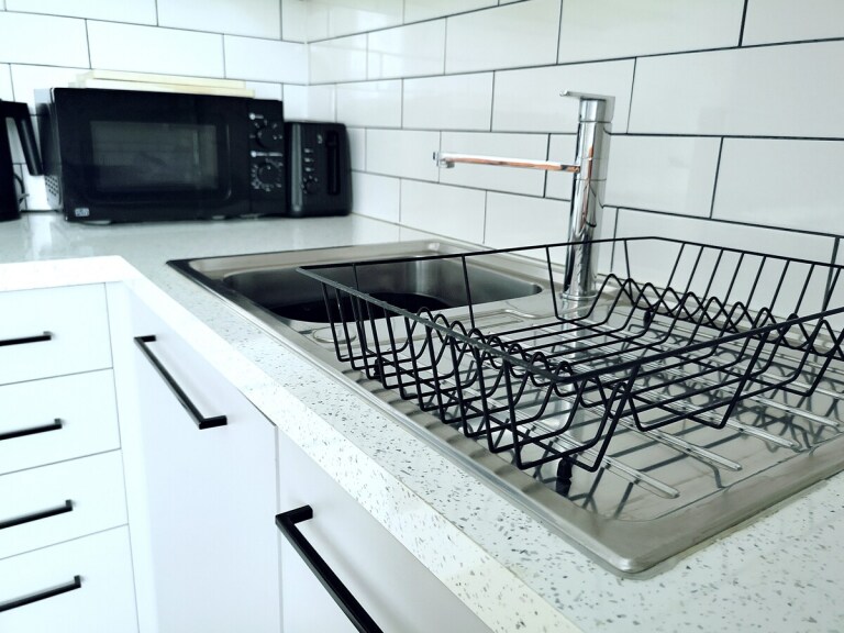 Inside, enjoy a thoughtfully designed living space with free high-speed Wi-Fi, a comfortable seating area, and streaming services for relaxing evenings. The fully equipped kitchen makes meal preparation easy, while a washing machine, dishwasher, and ample storage add practical convenience. A dedicated work desk caters to business travellers or longer stays.